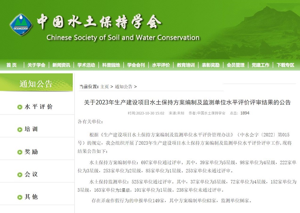 10月30日,中国水土保持学会发布了关于2023年生产建设项目水土保持监测单位水平评价评审结果的公告,|幸运飞行艇直播记录查询开奖结果被评为2023年生产建设项目水土保持监测单位水平评价4星级(满5星)单位。此次证书成功升级,是水文科技公司水土保持专业人才队伍和技术能力建设成效的结晶,对提升公司品牌影响力和市场竞争力具有重要意义。